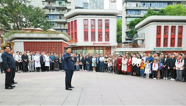 九龍坡區(qū)謝家灣街道民主村社區(qū)是一個(gè)老小區(qū),2022年初啟動(dòng)更新改造項(xiàng)目并納入全國(guó)有關(guān)試點(diǎn)。習(xí)近平來到這里,察看小區(qū)改造和便民服務(wù)情況,聽取提升基層治理效能、為基層減負(fù)情況介紹。他還走進(jìn)社區(qū)食堂,同正在就餐的群眾親切交流,鼓勵(lì)社區(qū)食堂實(shí)現(xiàn)可持續(xù)發(fā)展。習(xí)近平指出,老舊小區(qū)改造是城市更新的一個(gè)重點(diǎn),也是一項(xiàng)民生工程,既要保留歷史記憶和特色風(fēng)貌,又要解決居民關(guān)切的實(shí)際問題。要總結(jié)推廣這方面的成功經(jīng)驗(yàn),更好惠及廣大社區(qū)居民。城市治理的很多工作要靠基層黨組織這個(gè)戰(zhàn)斗堡壘和社區(qū)這個(gè)平臺(tái)去落實(shí),要厘清城市社區(qū)職責(zé)事項(xiàng),繼續(xù)推動(dòng)資源下沉、完善服務(wù)設(shè)施,強(qiáng)化網(wǎng)格化管理、信息化支撐,提高社區(qū)精細(xì)化治理、精準(zhǔn)化服務(wù)水平。