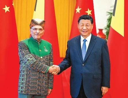 習近平強調,中方愿同東帝汶一道,朝著“三個更高”的目標,引領雙邊關系長期穩定發展。一是堅定相互支持,打造更高水平雙邊關系。中方堅定支持東帝汶維護國家統一和社會穩定的努力,愿同東帝汶全面深化戰略協作和發展合作,維護好兩國主權和安全利益,朝著共建命運共同體的大方向邁進。二是堅持互利共贏,開展更高質量務實合作。圍繞產業振興、基礎設施建設、糧食自給、民生改善等四大重點領域合作,以簽署共建“一帶一路”合作規劃為契機,加強發展戰略對接,分享水利建設、節水灌溉、防災減災等領域經驗技術,實施好水稻栽培等農業合作,推進漁業、減貧等合作,助力東帝汶經濟自主和多元化發展。三是共促“全球南方”事業,開展更高層次多邊協作,弘揚和平共處五項原則精神,加強在聯合國、世界貿易組織等多邊平臺協調配合,共同倡導平等有序的世界多極化、普惠包容的經濟全球化,推動構建人類命運共同體。中方也愿在中國-葡語國家經貿合作論壇、聯合國糧農組織等框架內同東帝汶開展更多雙邊、三方合作。