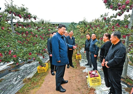 紅彤彤的花牛蘋果掛滿枝頭,一派豐收景象。習(xí)近平走進(jìn)果林,了解相關(guān)種植、技術(shù)和管理情況。他說,鄉(xiāng)村振興關(guān)鍵在產(chǎn)業(yè)振興。經(jīng)過70多年培育發(fā)展,花牛蘋果品牌更響亮了。要加強(qiáng)品種保護(hù)和培育,優(yōu)化種植方式,創(chuàng)新營(yíng)銷模式,把這個(gè)特色產(chǎn)業(yè)做得更大,帶動(dòng)更多群眾增收致富。他祝鄉(xiāng)親們的生活像蘋果一樣紅紅火火。