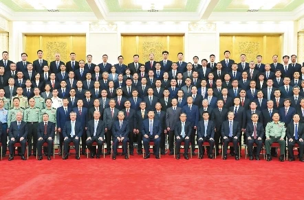 上午10時許,習近平等黨和國家領導人來到人民大會堂北大廳,全場響起長時間熱烈掌聲。習近平等同大家親切握手,并合影留念。
