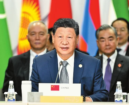 當地時間10月24日上午,國家主席習近平在喀山會展中心出席“金磚+”領導人對話會并發表題為《匯聚“全球南方”磅礴力量 共同推動構建人類命運共同體》的重要講話。 新華社記者 李學仁 攝