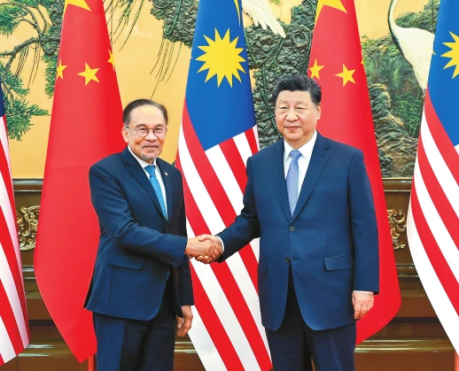習(xí)近平強(qiáng)調(diào),雙方要發(fā)展高水平戰(zhàn)略伙伴關(guān)系,繼續(xù)保持高層密切交往,加強(qiáng)治國理政經(jīng)驗(yàn)交流,增進(jìn)政治互信,堅(jiān)定支持彼此核心利益和重大關(guān)切。中方支持馬方堅(jiān)持戰(zhàn)略自主,選擇符合自身國情的發(fā)展道路。雙方要加強(qiáng)發(fā)展戰(zhàn)略對接,深化全方位互利合作,持續(xù)推進(jìn)高質(zhì)量共建“一帶一路”,共同實(shí)施好“兩國雙園”等旗艦項(xiàng)目,打造數(shù)字經(jīng)濟(jì)、人工智能、新能源等合作新增長點(diǎn),探討建立減貧交流合作機(jī)制。歡迎馬方用好中國國際進(jìn)口博覽會平臺,把更多馬來西亞優(yōu)質(zhì)特色產(chǎn)品推向中國。中方愿同馬方深化高等教育、文化、旅游、青年、地方等交流合作,拉緊中馬友好民心紐帶。倡導(dǎo)文明多元共生、和諧包容,踐行以和平、合作、包容、融合為核心的亞洲價(jià)值觀,推動中華文明和伊斯蘭文明在互學(xué)互鑒中共同發(fā)展。