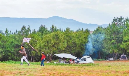 游客在尋甸縣北大營天然草場露營。 記者 高吳雙 攝