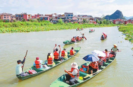 丘北縣普者黑秋日美景吸引游客前來泛舟。 記者 胡妤雅 攝