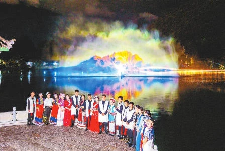 麗江黑龍潭公園水幕投影秀上演。 通訊員 徐俊 攝
