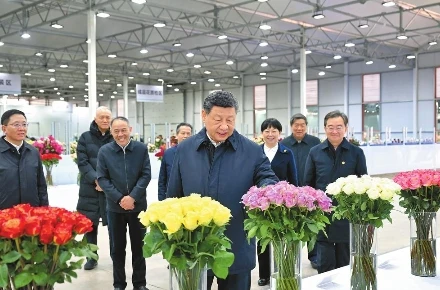 19日下午,習(xí)近平來(lái)到麗江現(xiàn)代花卉產(chǎn)業(yè)園。在展廳,他察看玫瑰、馬蹄蓮鮮切花品種展示,聽(tīng)取云南花卉產(chǎn)業(yè)發(fā)展情況介紹。在玫瑰花種植區(qū),他了解智能溫室無(wú)土栽培技術(shù),同現(xiàn)場(chǎng)村民、技術(shù)人員親切交談。他還來(lái)到玫瑰花分級(jí)包裝生產(chǎn)線,察看篩選、分級(jí)到包裝、發(fā)貨的全流程,對(duì)鮮切花通過(guò)物流及時(shí)外銷表示肯定。習(xí)近平指出,云南花卉產(chǎn)業(yè)前景廣闊,要著眼全產(chǎn)業(yè)鏈,從種業(yè)端、種植端、市場(chǎng)端不斷深耕細(xì)作,讓這一“美麗產(chǎn)業(yè)”成為造福群眾的“幸福產(chǎn)業(yè)”。