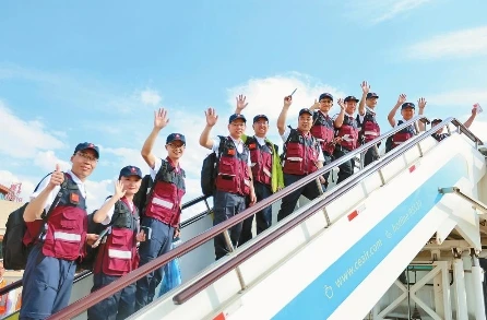 中國政府援緬衛生防疫隊在昆明長水國際機場登機。本報記者 高吳雙 攝