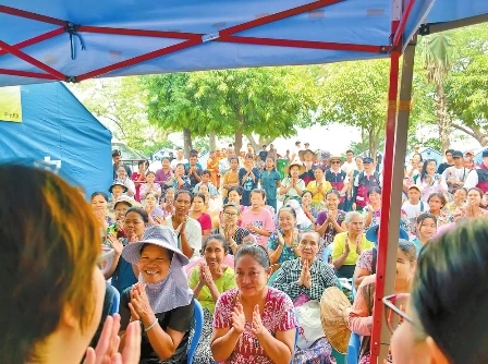 緬甸當地時間4月26日,烈日高懸,地面溫度很高。在曼德勒一處臨時安置點的空地上,百余名緬甸受災民眾圍坐在臨時搭建的帳篷外,認真聆聽來自中國政府援緬衛生防疫隊心理專家的引導。
