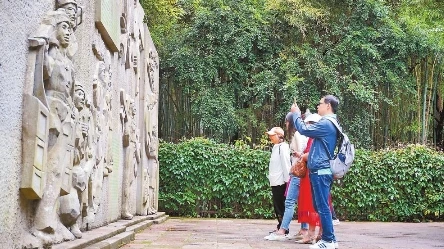 游客參觀國(guó)殤墓園浮雕墻。 本報(bào)記者 楊艷鵬 李建國(guó) 攝