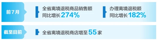 我省稅務部門多措并舉推動離境退稅優化政策落細落實,前7月,全省離境退稅商品銷售額同比增長274%、辦理離境退稅額同比增長182%,跨境消費市場持續火熱。同時,全省離境退稅商店增至55家。