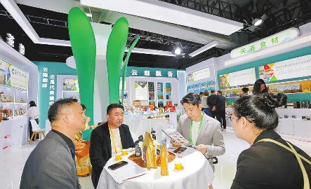 客商在云南展區進行洽談。 本報記者 黃興能 攝