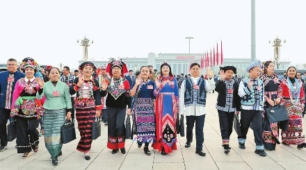 3月5日上午,十四屆全國人大三次會議在北京人民大會堂開幕,云南代表團各族代表信心滿滿步入會場。 本報記者 陳飛 攝