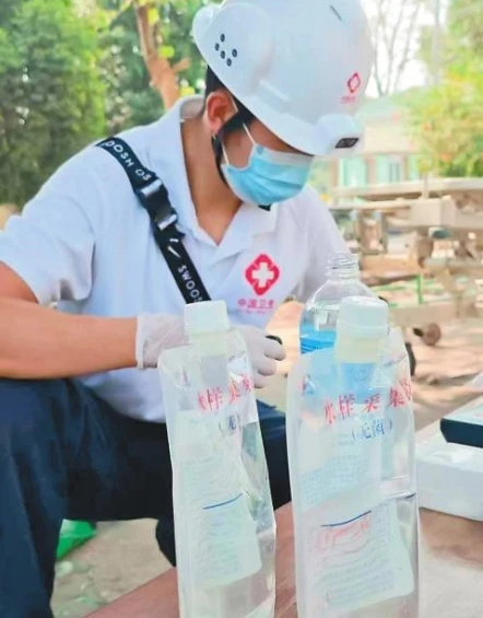 地震發(fā)生以來,緬甸當?shù)剡B續(xù)40度以上的高溫天氣讓災后疫情防控形勢格外嚴峻。為了保障當?shù)蒯t(yī)療機構(gòu)的基礎(chǔ)條件,3月31日上午,中國云南救援醫(yī)療隊在千床醫(yī)院對飲用水和緊急用水開展水質(zhì)檢測,確保用水安全。