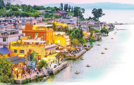而在滇池之濱的海晏村,又是另一番景象。憑借落日景觀,這里人流如織,餐飲店與咖啡館燈火通明、座無虛席,“落日經(jīng)濟”效益顯著。