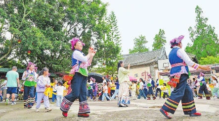 建水縣團山景區(qū)煙盒舞表演。 通訊員 高銘睎 攝