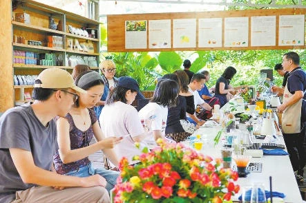 游客在天玉莊咖啡園品嘗咖啡。 通訊員 羅嘉 攝