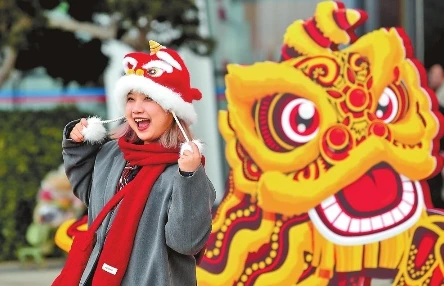 圖③:連日來,昆明大街小巷洋溢著濃濃的年味,市民在節慶飾品前拍照留念。 記者 楊崢 攝