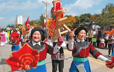 1月29日,大年初一,晉寧區(qū)2025年“民俗大拜年”暨非物質(zhì)文化遺產(chǎn)項(xiàng)目巡演活動(dòng)在昆陽(yáng)街道永樂(lè)大街啟幕。來(lái)自全區(qū)各鄉(xiāng)鎮(zhèn)(街道)的17支表演隊(duì),帶來(lái)舞龍耍獅、金蛇鬧春、秧佬鼓、板凳龍等非遺項(xiàng)目展演以及傳統(tǒng)民間旱船、蚌殼、扇花舞等精彩表演,充滿了濃濃的非遺年味。 記者 楊崢 黃興能 攝