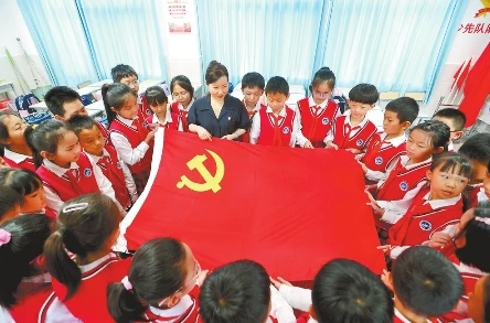 6月30日,昆明市海源小學開展紅色教育潤童心活動,迎接“七一”。學校通過組織學生認識黨旗、講述黨旗故事、跟黨旗合影等方式引導孩子厚植愛黨愛國情懷。(