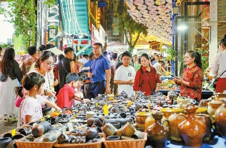 暮色四合,建水紫陶街煙火升騰,游人如織。該街區(qū)以紫陶文化為主線,集紫陶銷售及展示、休閑體驗(yàn)、度假觀光為一體,數(shù)十家紫陶店、紫陶攤位依次排開(kāi),從茶具、家居擺件到文創(chuàng)產(chǎn)品,再到現(xiàn)場(chǎng)拉坯、刻花體驗(yàn),讓游客近距離感受非遺技藝魅力。建水紫陶街通過(guò)“非遺+”模式,帶動(dòng)周邊餐飲、住宿、手工藝品銷售等業(yè)態(tài)同步增長(zhǎng),激活夜市經(jīng)濟(jì)消費(fèi)場(chǎng)景。