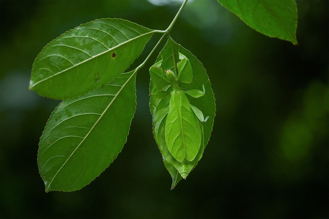 據調查團隊介紹,這只滇葉?棲息于一株越南山香圓植物上,從個體形態可明確判斷為成體雌性。當地群眾表示,此前曾偶然見過這類 “葉子蟲”,但其外形與樹葉高度相似,不仔細觀察很難分辨。專家進一步解讀,滇葉?的擬態能力堪稱昆蟲界的 “偽裝大師”:頭部與常見葉?形態相近,而胸部、腹部的形態與紋路完全模擬樹葉特征——前肢不僅演化成葉片形狀,邊緣還擬態出自然界中樹葉腐蝕的色彩;背部鞘翅宛如一片完整的嫩葉,與植物葉片重合時,肉眼幾乎無法識別。更令人稱奇的是,它還能通過調整身體顏色深度實現精準隱藏,背部呈嫩綠色、腹部為暗綠色,完美融入周邊生態環境,有效規避天敵威脅。
