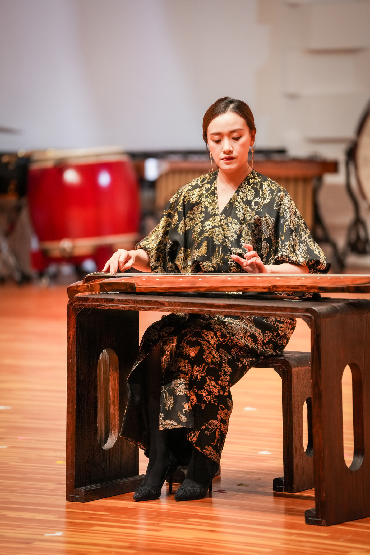 本次專場以“青春演繹·民族共鳴”為主題,廣東吹打樂《醒獅鼓樂》以鏗鏘鑼鼓配合高亢號聲開啟演出,以奔放的節奏展現出鮮明的地域音樂特色;隨后上演的古琴曲《廣陵散》,以沉雄古樸的音色傳遞出古曲的歷史厚重感;三弦獨奏《夢中云南》則以靈動旋律,展現了云南地區的自然人文風貌……風格迥異的曲目輪番上演,帶領觀眾沉浸在民族音樂的美好氛圍中。