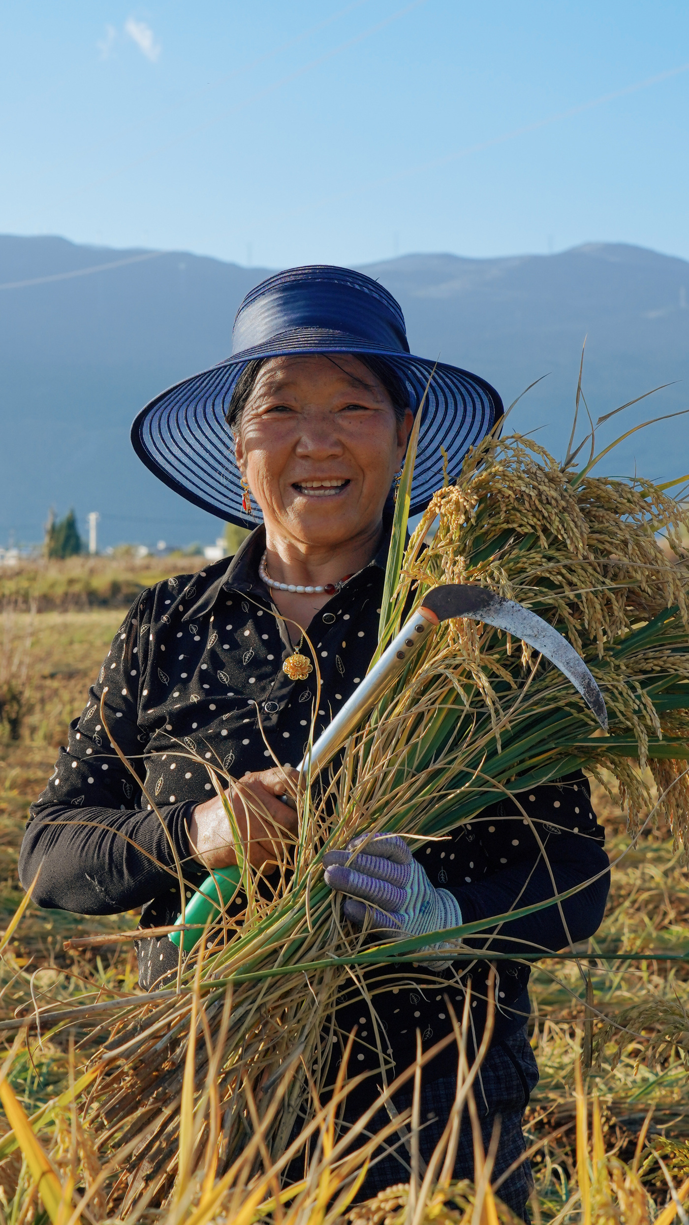 秋收時節的鶴慶,陽光為廣袤的田野鋪上了濃郁的金色。在草海鎮新民天赦坪村,村民們正搶抓近日難得的連續晴好天氣,全力投入秋收。金色的稻浪在微風中搖曳,空氣中彌漫著稻谷清新的香氣,與泥土的氣息交織在一起。