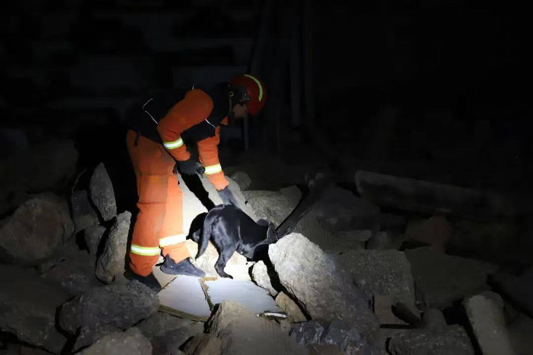 “當(dāng)時(shí)滑坡的體量太大了,三豐幾乎沒歇過。只要挖機(jī)刨出一點(diǎn)空間,我馬上讓它上去嗅探。我能從它的興奮程度和吠叫快慢看出來,下面是真的有人還是只是氣味殘留。”王坤說,夜晚山上寒風(fēng)刺骨,他幾乎沒合過眼。“雖然都說犬是怕熱不怕冷,但那幾天真的太冷了。我很擔(dān)心它,所以我把它拴在身邊,攏一堆火取暖。”搜救結(jié)束返程的時(shí)候,三豐的腳上、身上都被碎石和荊棘劃傷了。“它自己找了一塊石頭,累得靠在石頭上睡著了。”