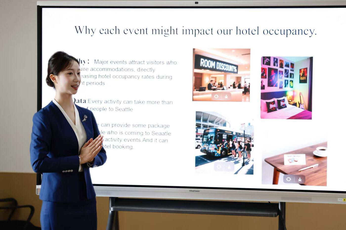 這次觸動是兩年前在深圳一家酒店實習時,李雨霞按標準流程接待帶娃的家庭旅客,剛要遞上房卡,孩子卻哭鬧起來,母親一邊手忙腳亂地安撫,一邊艱難收拾行李。她愣在原地,但身旁的同事卻用吉祥物貼紙和貼心服務輕松化解。李雨霞意識到,書本上的“好服務”和現實中能打動人心的“極致服務”之間,隔著“實踐”的鴻溝。正是這道鴻溝,點燃了她回爐重造、學習真技能的決心。