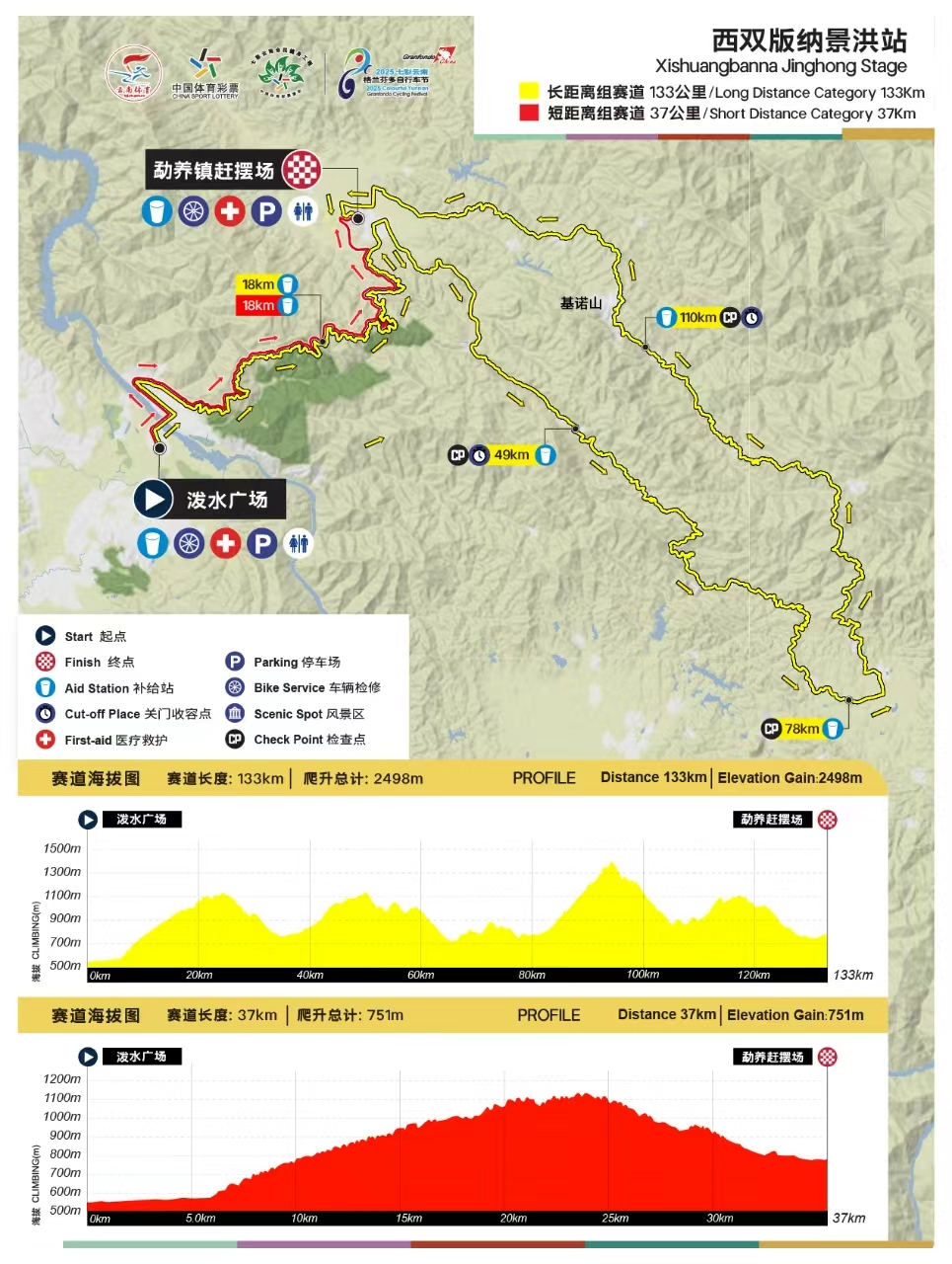 本屆景洪站參賽選手覆蓋21個(gè)國(guó)家和地區(qū),外籍及港澳臺(tái)選手達(dá)143人,國(guó)內(nèi)選手則來自29個(gè)?。▍^(qū)、市)的百余個(gè)城市。賽事設(shè)133公里長(zhǎng)距離和37公里短距離兩個(gè)組別,其中長(zhǎng)距離組1841名選手將挑戰(zhàn)穿越基諾山鄉(xiāng)的全地形賽道,短距離組236名選手則聚焦雨林門戶的精華路段。
