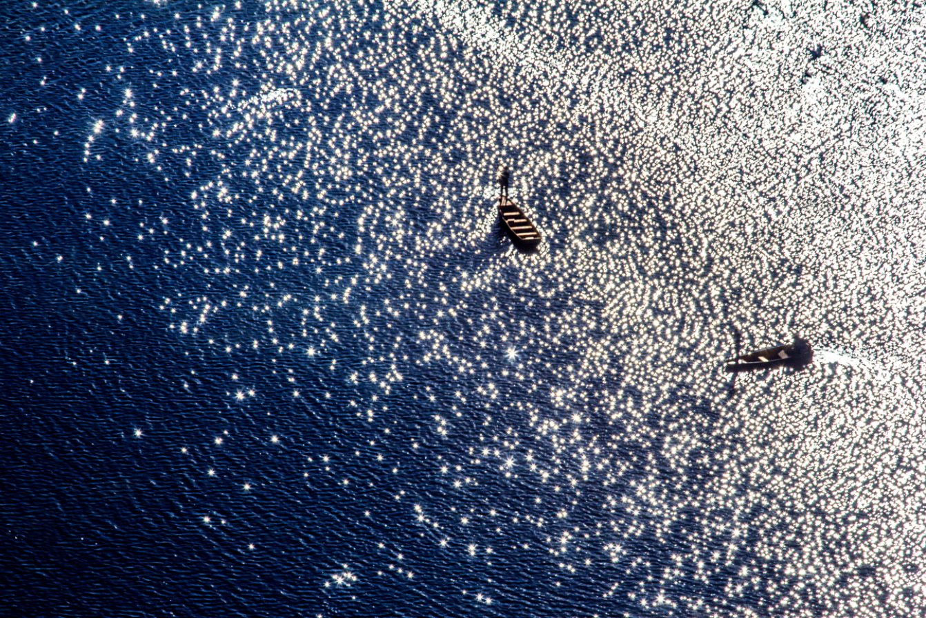 晨霧如輕紗,籠住澄澈的湖面。殘荷疏影橫斜,蘆葦簌簌低語,一葉輕舟劃破寧靜,驚起白鷺翩躚掠過水面。暖陽傾瀉而下,湖天相接處幻化為“天空之境”,倒映著喀斯特峰林的靈秀輪廓。