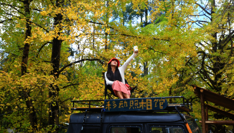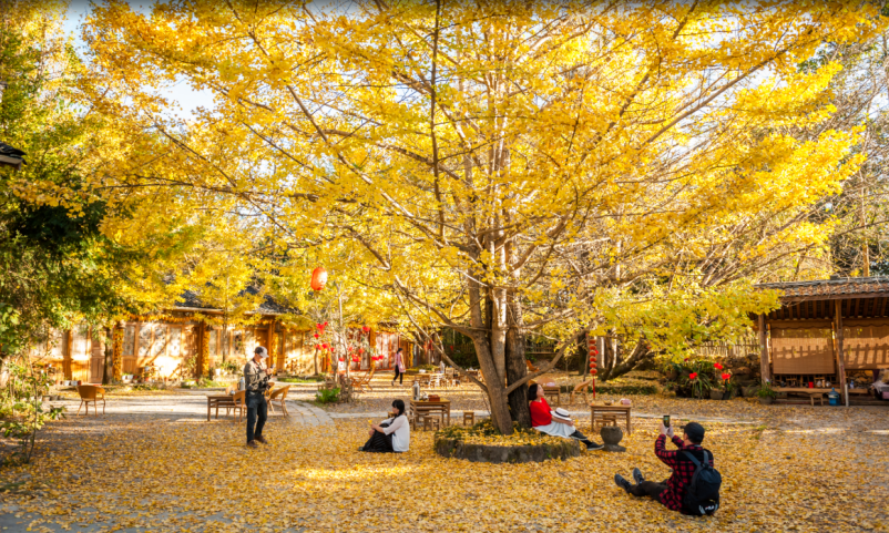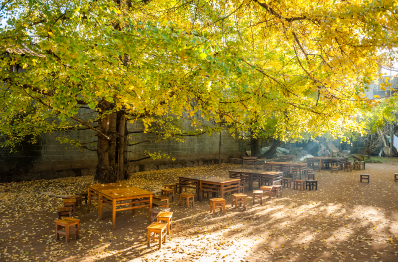 人和銀杏樹共享村落