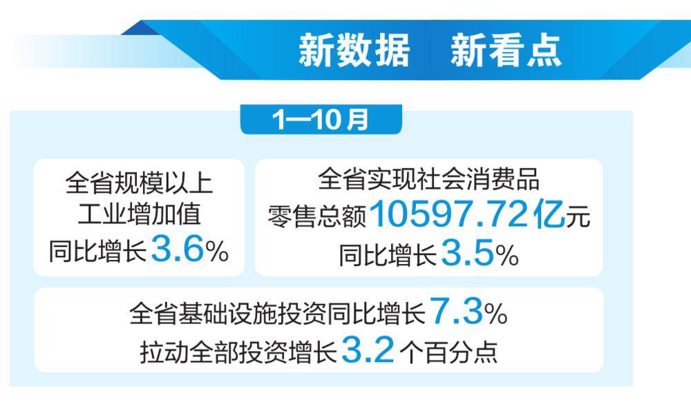 總體來看,隨著更加積極有為的宏觀政策持續發力顯效,1—10月,全省經濟運行總體平穩,轉型升級扎實推進,發展新動能繼續壯大。但也要看到,有效需求偏弱,結構調整仍需聚焦關鍵矛盾、穩步推進深化。下階段,全省各級各部門要堅持穩中求進工作總基調,全方位擴大有效需求,著力穩就業、穩企業、穩市場、穩預期,積極推動宏觀政策持續落地增效,促進經濟質的有效提升和量的合理增長。