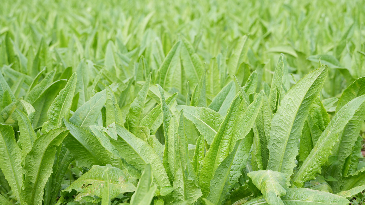 貢菜幼苗翠綠鮮嫩,長勢喜人。(陳治學 攝)