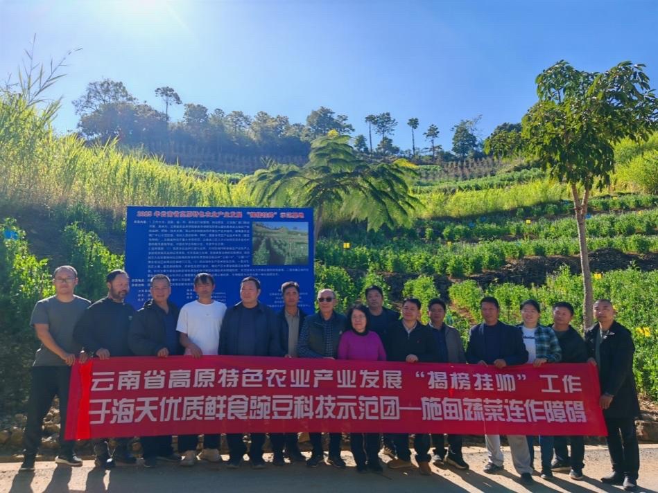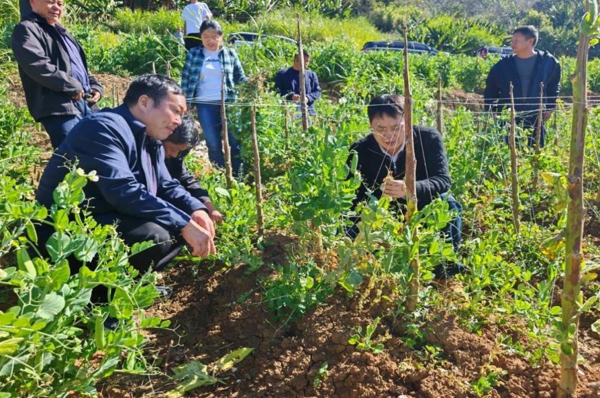 在保山施甸縣,專家團(tuán)隊(duì)聯(lián)合當(dāng)?shù)剞r(nóng)業(yè)部門,對(duì)于海天博士負(fù)責(zé)的云南省“揭榜掛帥”項(xiàng)目——“施甸蔬菜連作障礙治理與優(yōu)質(zhì)鮮食豌豆科技示范”進(jìn)行現(xiàn)場(chǎng)指導(dǎo)。施甸豌豆多種植于坡陡、土淺、石漠化明顯的山區(qū),生產(chǎn)條件薄弱,抗災(zāi)能力差。部分田塊因長(zhǎng)期連作導(dǎo)致病害頻發(fā),嚴(yán)重影響產(chǎn)量與品質(zhì)。經(jīng)多點(diǎn)考察,專家們提出初步綜合治理建議:推行與非豆科作物輪作制度,打破病害循環(huán);加快引進(jìn)并示范“云豌118號(hào)”“保豐1號(hào)”等抗病高產(chǎn)良種;依據(jù)海拔與氣候差異科學(xué)規(guī)劃播期,實(shí)現(xiàn)節(jié)本增效;推廣化學(xué)與生物防治結(jié)合的綠色防控技術(shù),降低農(nóng)藥依賴。專家還采集了病株及土壤樣本帶回實(shí)驗(yàn)室進(jìn)行病原鑒定,后續(xù)將研發(fā)針對(duì)性生物防治藥劑,形成可復(fù)制推廣的綜合解決方案。