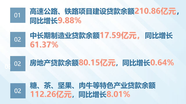持續提升金融服務水平,高速公路、鐵路、制造業、涉農等重點領域信貸支持明顯加強,為實體經濟發展增添了動能。