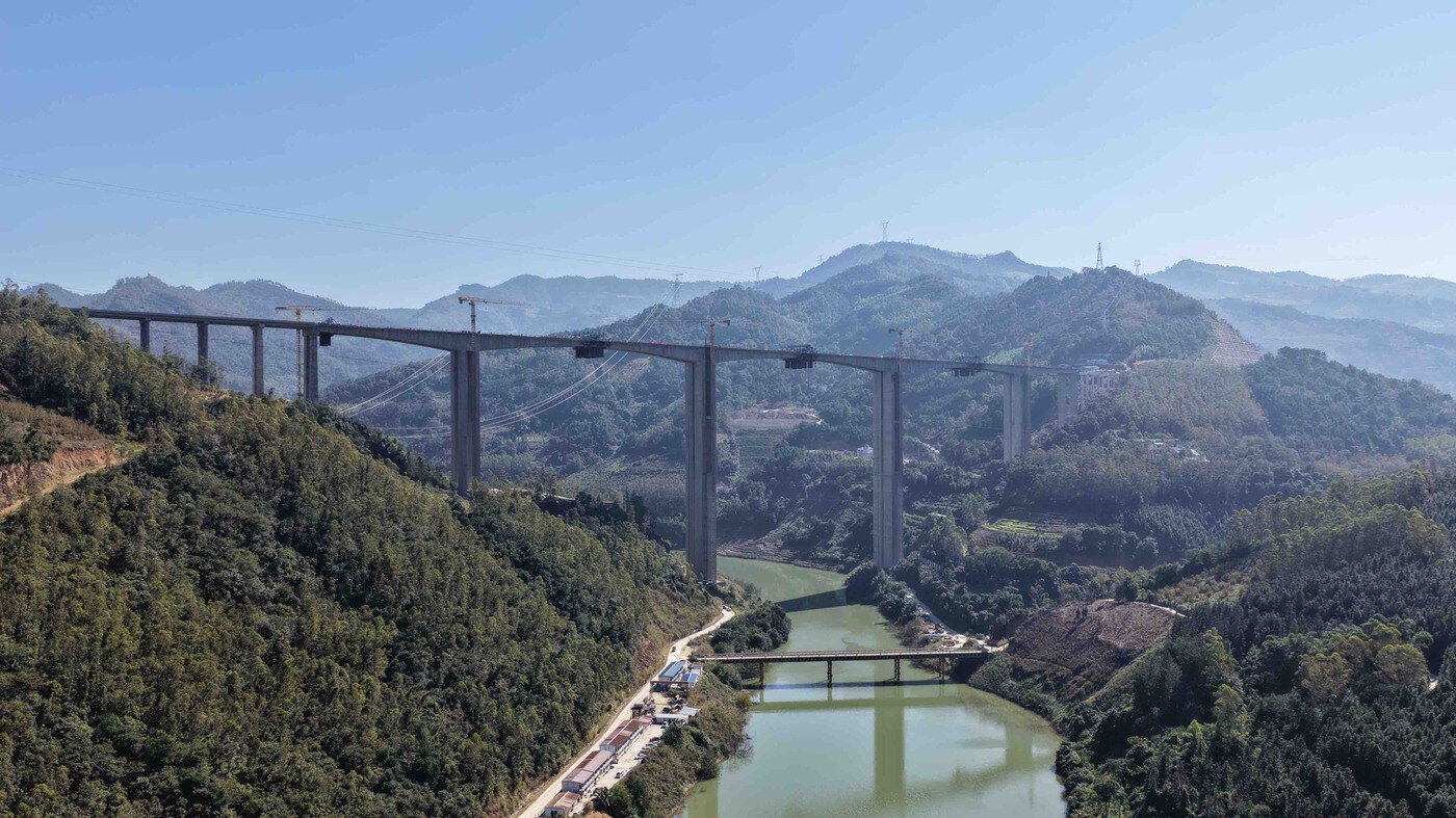 南盤(pán)江特大橋全長(zhǎng)948米,最大墩高160米,最大跨度180米,設(shè)10個(gè)合龍段。大橋自2021年5月開(kāi)始施工以來(lái),參建單位克服了地質(zhì)復(fù)雜、高空作業(yè)、生態(tài)環(huán)保、森林防火等施工難題,通過(guò)嚴(yán)格管理、規(guī)范施工,歷時(shí)1242天順利完成合龍任務(wù)。南盤(pán)江特大橋主橋合龍,為師丘高速公路順利實(shí)現(xiàn)通車(chē)目標(biāo)奠定了堅(jiān)實(shí)基礎(chǔ)。