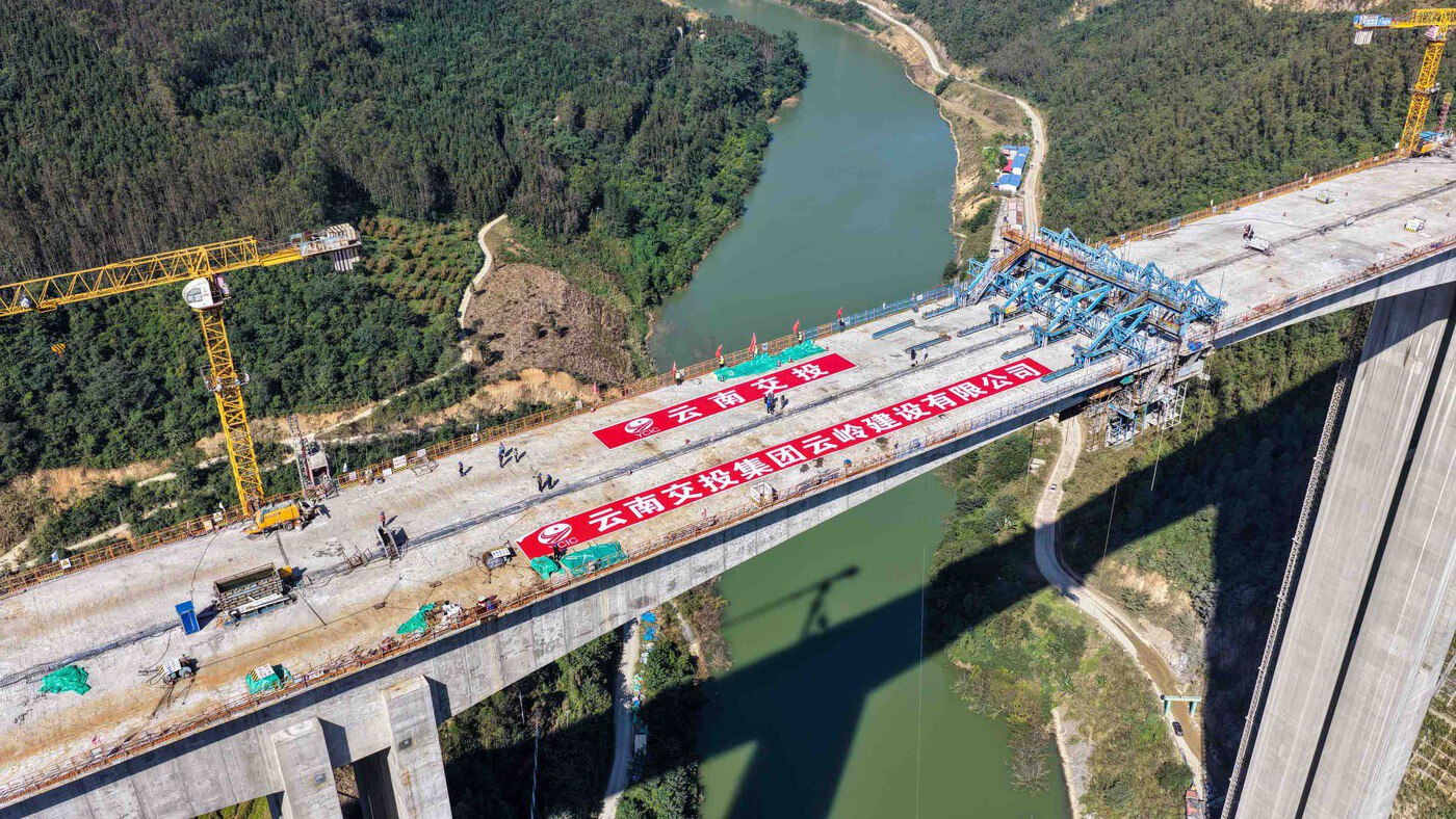 近日,云南師宗至丘北高速公路重點(diǎn)控制性工程——南盤(pán)江特大橋主橋全部合龍,進(jìn)入上部構(gòu)造附屬施工階段。