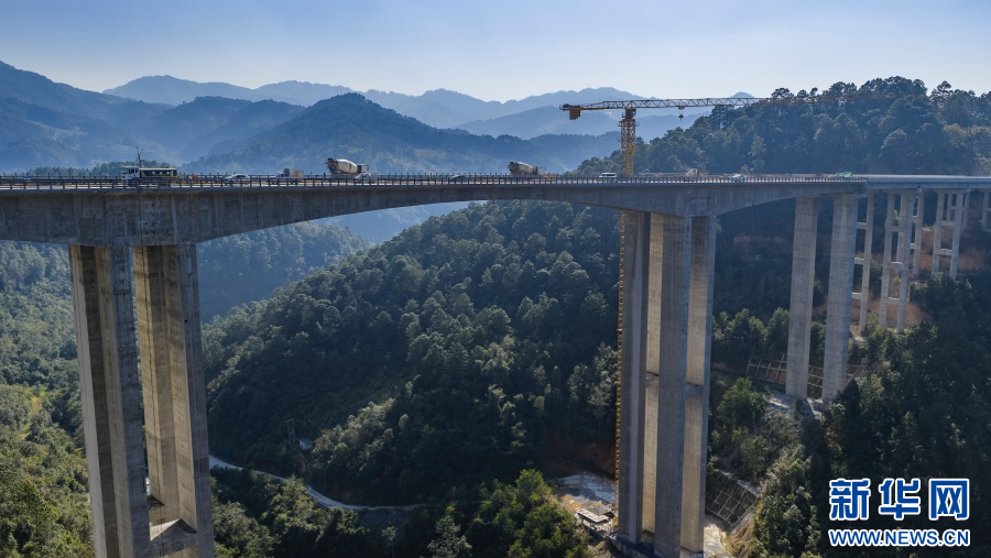 那興高速公路那紹特大橋建設有序推進(12月2日攝)。新華網發(熊平祥 攝)