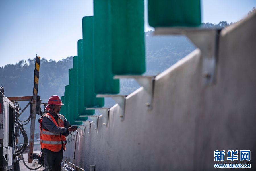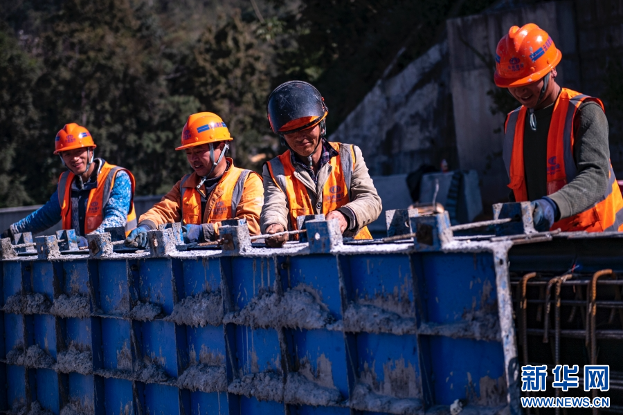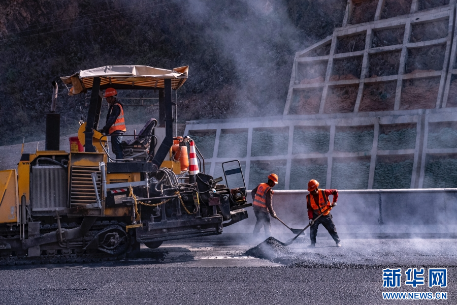 工人在那興高速公路建設施工現場忙碌(12月2日攝)。新華網發(趙仕庚 攝)