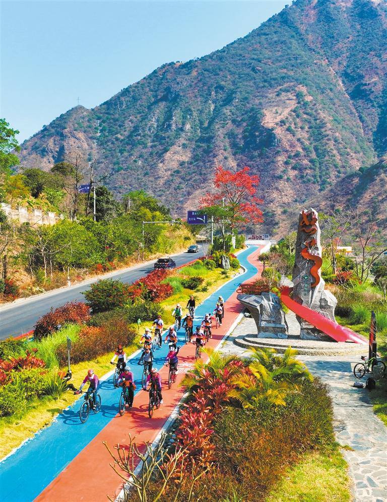 騎行愛好者在怒江美麗公路騎行。近年來,當?shù)亟煌ɑA設施不斷改善(攝于2024年11月15日)。 新躍華攝 (中經(jīng)視覺)