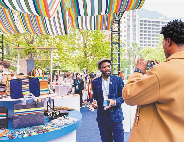 3月29日,2025減貧治理與全球發(fā)展(怒江)國際論壇,國外嘉賓在推薦怒江工藝品。 高玉生攝 (中經(jīng)視覺)