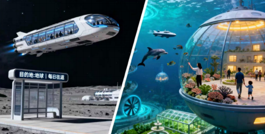 愿景:到2049年,人類的棲居空間已超越地表。太空與海洋不再是遙不可及的疆域,而成為日常生活的延伸。地球文明進入“多域共棲時代”——人類在陸地、太空與深海之間自由往返,生命的版圖第一次真正擴展到行星之外與海洋之下。