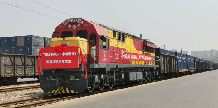 首趟“瀾湄快線+”中老泰柬國(guó)際多式聯(lián)運(yùn)貨物列車發(fā)車。云新聞資料圖