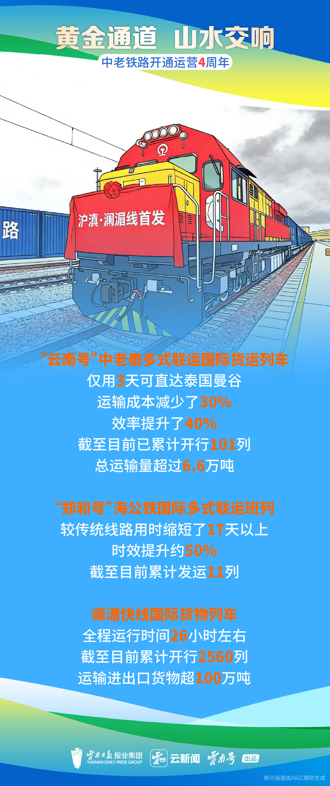 中國(guó)鐵路昆明局集團(tuán)有限公司相關(guān)負(fù)責(zé)人介紹,中老鐵路開(kāi)通運(yùn)營(yíng)后,鐵路部門(mén)瞄準(zhǔn)市場(chǎng)需求,開(kāi)行中老鐵路瀾湄快線國(guó)際貨物列車,創(chuàng)新推出“瀾湄快線+中歐班列”、滬滇·瀾湄線、京滇·瀾湄線、“昆明陸港號(hào)”鐵公海聯(lián)運(yùn)等一系列國(guó)際貨運(yùn)班列產(chǎn)品,打通老撾、泰國(guó)至歐洲的物流通道。瀾湄快線國(guó)際貨物列車全程運(yùn)行時(shí)間26小時(shí)左右,具有到貨時(shí)間可控、通關(guān)效率高和運(yùn)行速度快等特點(diǎn)。截至目前,中老鐵路累計(jì)開(kāi)行瀾湄快線國(guó)際貨物列車2560列,運(yùn)輸進(jìn)出口貨物超100萬(wàn)噸。
