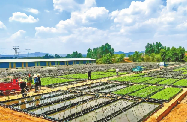 嵩明縣牛欄江鎮(zhèn)積極推廣精準(zhǔn)育苗、精準(zhǔn)施肥、精準(zhǔn)防控等管理技術(shù),有序推進(jìn)烤煙生產(chǎn)規(guī)?;N植。截至目前,全鎮(zhèn)已完成1.82萬畝烤煙移栽任務(wù),涉及8個(gè)村委會82個(gè)村民小組1058戶煙農(nóng),預(yù)計(jì)煙葉收購量5.21萬擔(dān)。(記者 龍舟 攝)