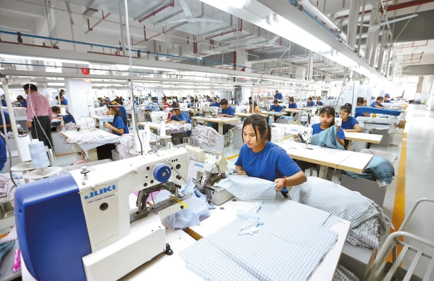 在瑞麗沿邊產業園內的雅戈爾時尚產業園,現代化的機械設備高速運轉,工人們專注地進行著裁剪、縫制、整燙、包裝等工作,高品質的襯衫、褲子等產品從這里走向全球市場。