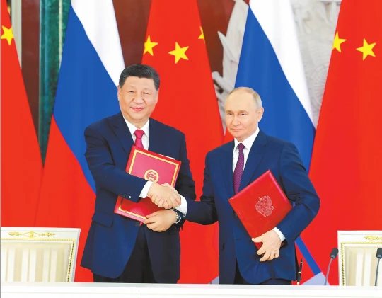 習近平指出,中俄雙方要堅持合作大方向,排除外部干擾,讓合作“穩”的基礎更堅實、“進”的動能更充足。要發揮兩國資源稟賦和產業體系互補優勢,拓展經貿、能源、農業、航空航天、人工智能等領域高質量互利合作;以共建“一帶一路”和歐亞經濟聯盟對接為平臺,構建高標準互聯互通格局;充分釋放“中俄文化年”潛能,加強教育、電影、旅游、體育、地方等合作,促進深層次民心相通;密切在聯合國、上海合作組織、金磚國家等多邊平臺協調和配合,團結全球南方,堅持真正的多邊主義,引領全球治理變革正確方向。