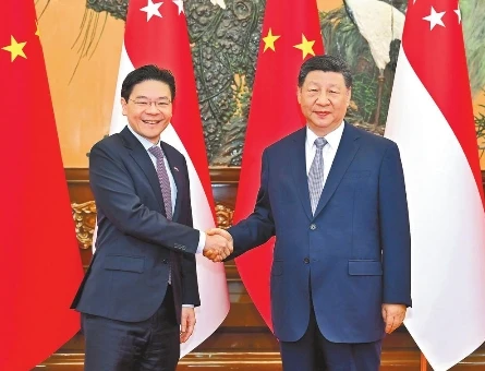 習近平強調,中新要牢牢把握兩國友好大方向,始終從戰略高度和長遠角度看待和發展中新關系,確保航向不偏、動力不減。要筑牢中新友好政治基礎,支持彼此核心利益和重大關切,以更高水平政治互信服務兩國關系發展。中方歡迎新方繼續深度融入中國發展,雙方要深入推進共建“一帶一路”合作,打造數字經濟、綠色發展、人工智能等領域標志性成果,推動重大項目提質升級,續寫高質量合作新篇章。要鼓勵兩國人民常來常往,深化人文交流合作,讓中新友好更加深入人心。中方始終認為,和平、發展、合作、共贏的時代潮流不可阻擋,世界不能重拾霸權主義,不能被拖回叢林法則。中方愿同新方一道,站在歷史正確一邊、站在公平正義一邊,共同倡導平等有序的世界多極化、普惠包容的經濟全球化,推動世界走向和平、安全、繁榮、進步的光明前景。
